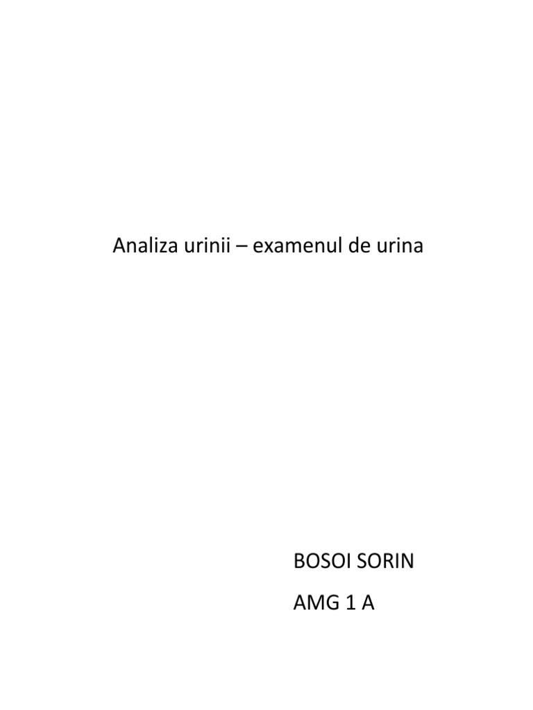 Analiza Urinei Analiza Caracterelor Fizice Si Chimice Ale Urinei
