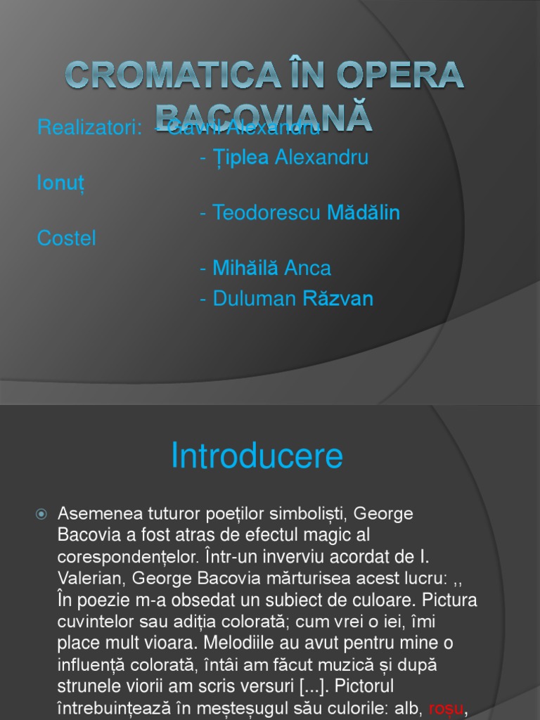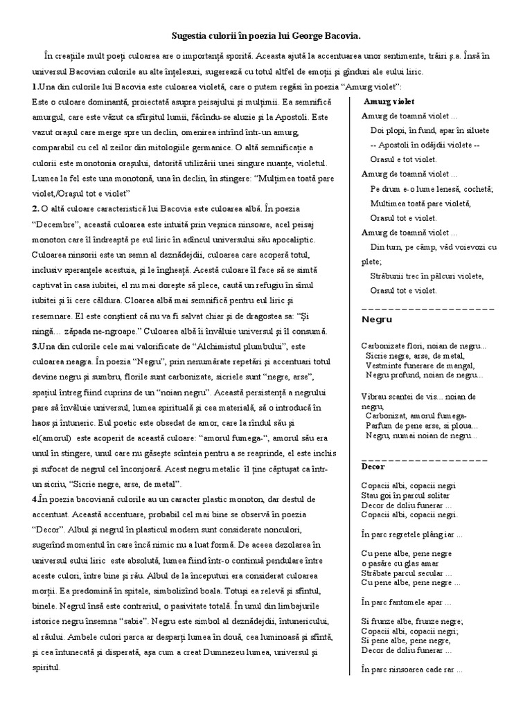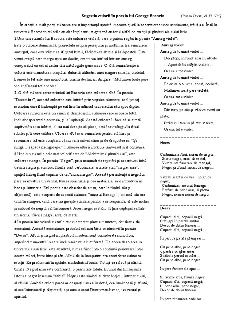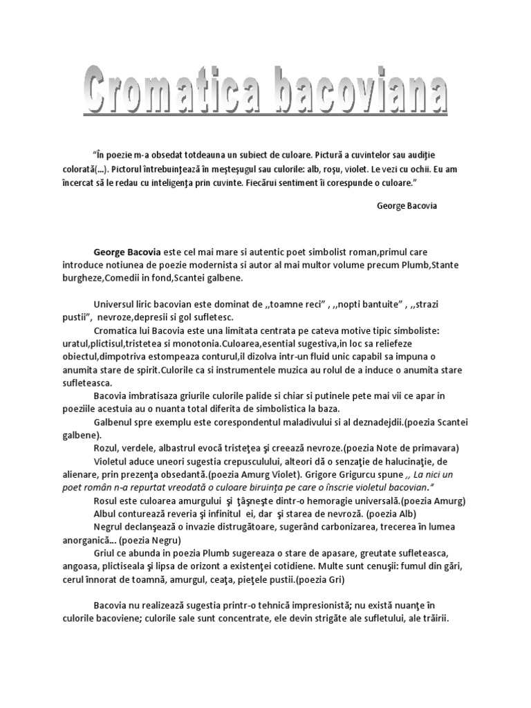 Proiect George Bacovia Universul Cromatic Romana 30979