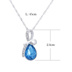 Colier Diamant Albastru Cristal Picatura De Apa Lantisor Pret