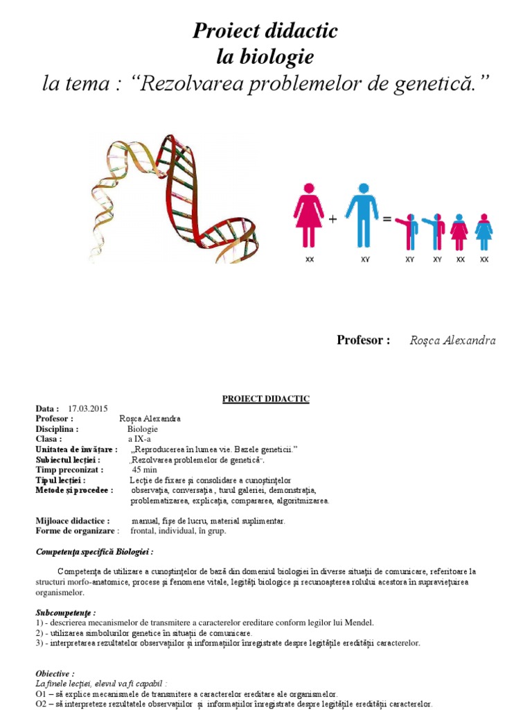La Tema Rezolvarea Problemelor De Genetică Proiect Didactic